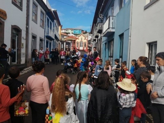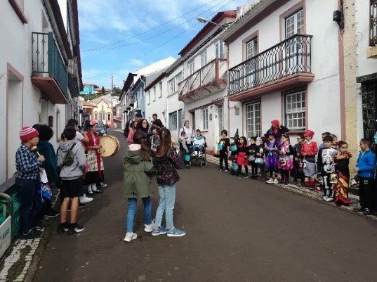 No dia em questão, a turma da pré, as turmas do 1º Ciclo e a turma PEREE percorreram as principais ruas da Vila do Topo, e diversos espaços da escola, como os serviços administrativos, o Conselho Executivo, as salas de professores e de auxiliares, a cozinha e a biblioteca.