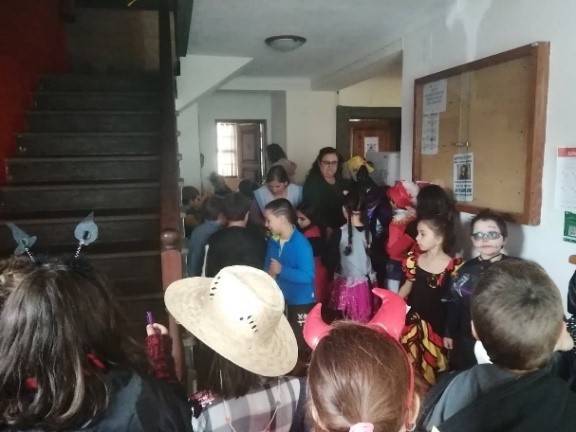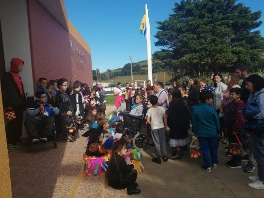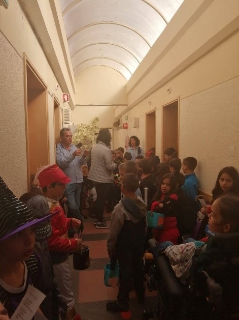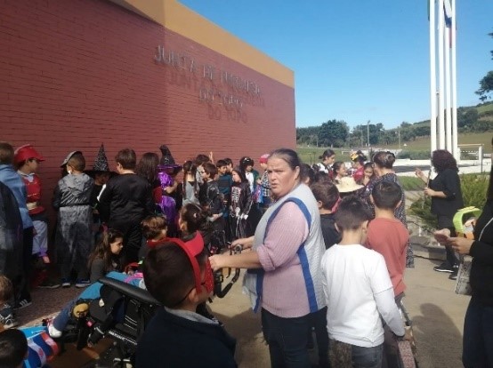 Os alunos tocaram e cantaram alegremente a canção alusiva a este evento, nos diversos espaços onde fomos. As crianças, seguiam sorridentes, algumas fantasiadas, relembrando também a comemoração do Halloween.