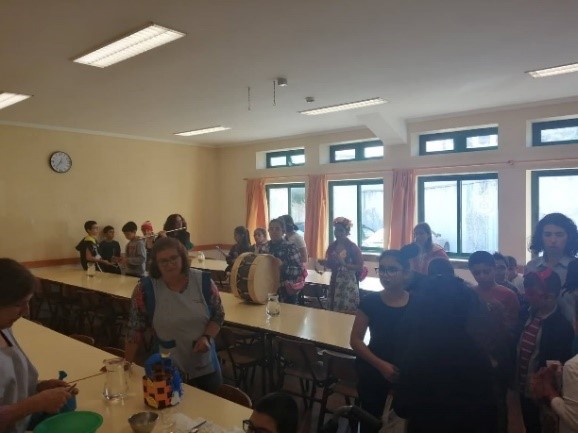 Fomos presenteados com a colaboração da professora Isabel Dias no violão e dos alunos do 6º ano que a acompanharam com os seus instrumentos. Acrescente-se que a docente de Música apresentou a este departamento e ensaiou com todos os alunos em questão uma nova música e letra, adequada à ocasião.