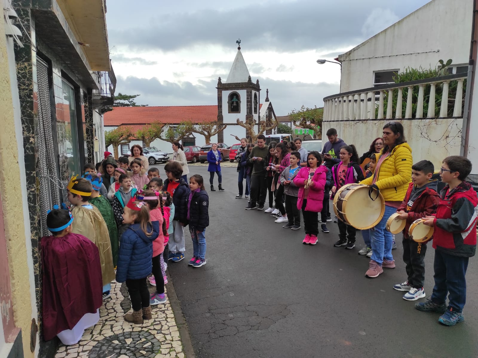 Foi no passado dia 6 de janeiro que o Departamento da Pré e 1.º Ciclo da EBI da Vila do Topo saiu à rua para brindar a freguesia com o seu Hino de Reis. Sempre com o habitual apoio da professora de música, Isabel Dias, os alunos ensaiaram alguns dias antes e depois desfilaram pelas instituições e comércio da freguesia, brindando quem os recebeu com as suas vozes e instrumentos bem afinados. Note-se que este ano a turma do 8.º ano também se juntou ao grupo, engrossando o coro. Como de costume, fomos muito bem recebidos pela comunidade local, na manutenção desta tradição que pretendemos manter viva na vida dos nossos alunos.