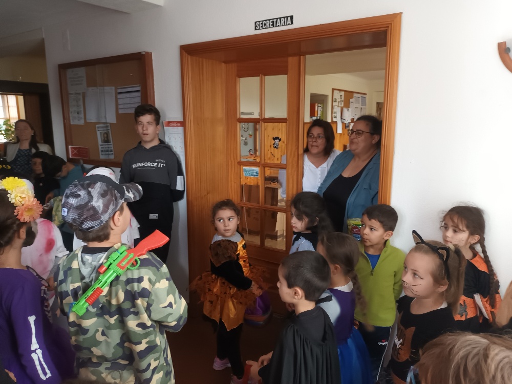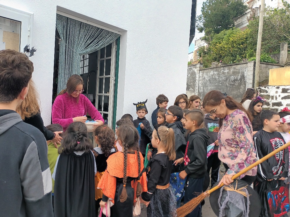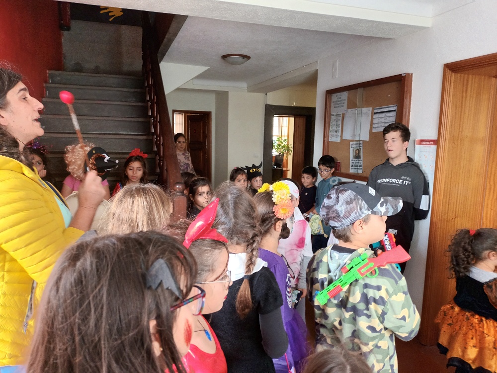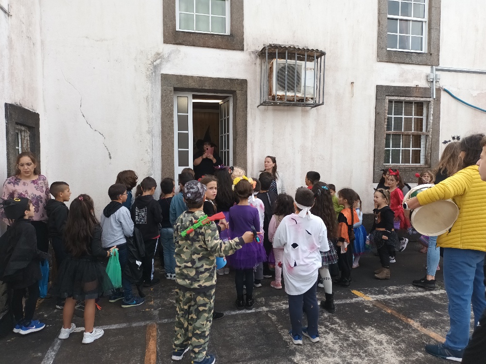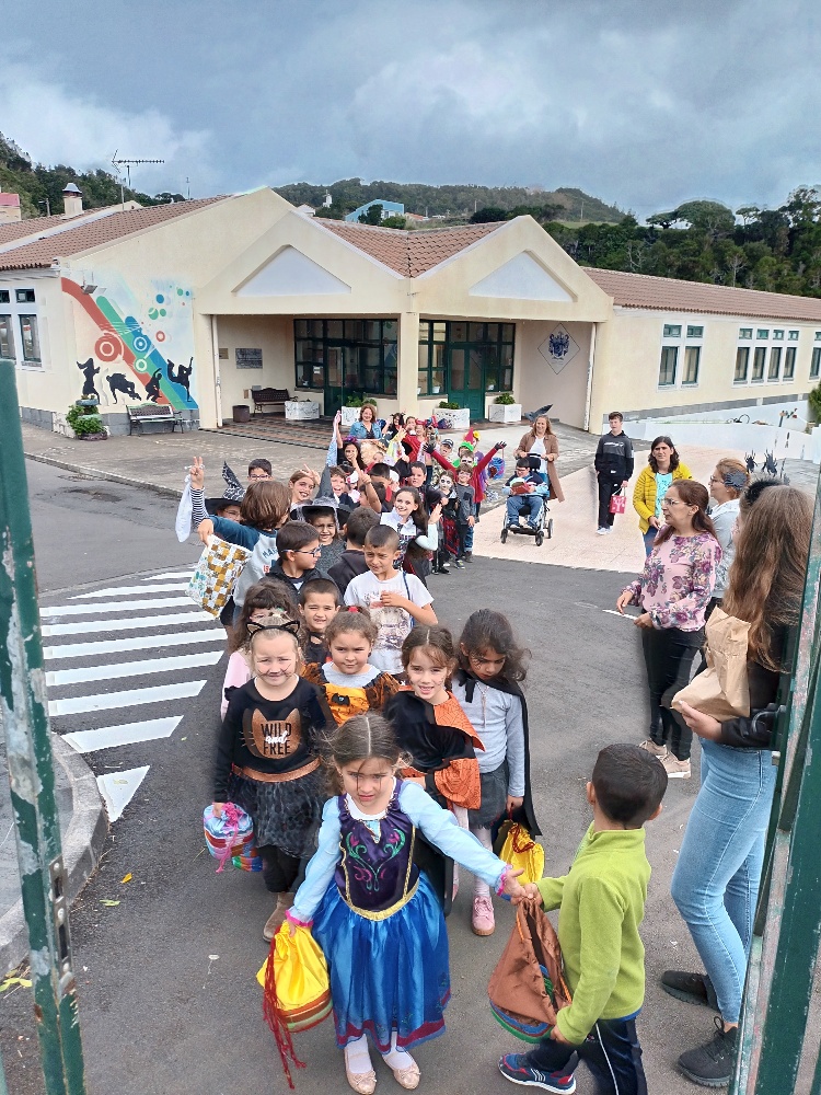 Neste dia, a turma da pré, as turmas do 1º Ciclo e a turma PEEF Ocupacional percorreram as principais ruas da Vila do Topo, e diversos espaços da escola, como os serviços administrativos, o Conselho Executivo, as salas de professores e de auxiliares, a cozinha e a biblioteca.