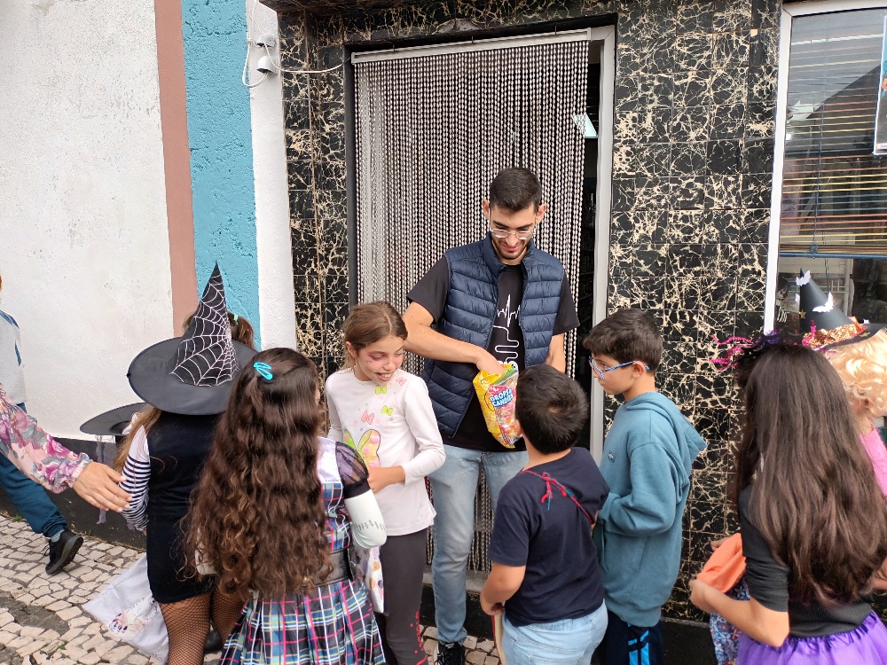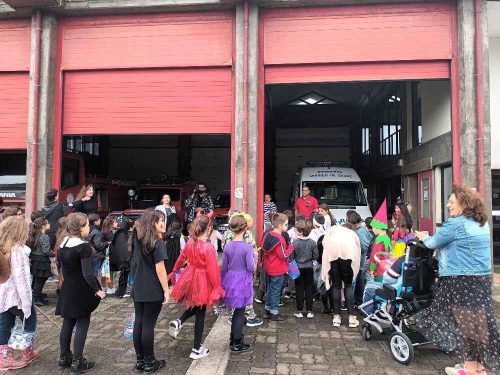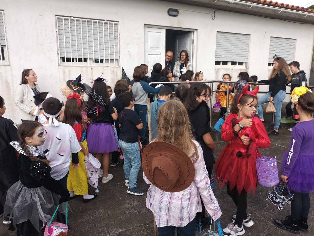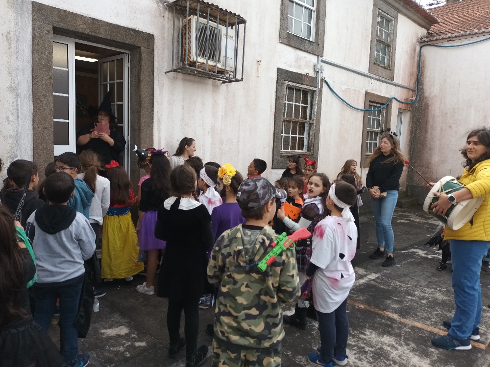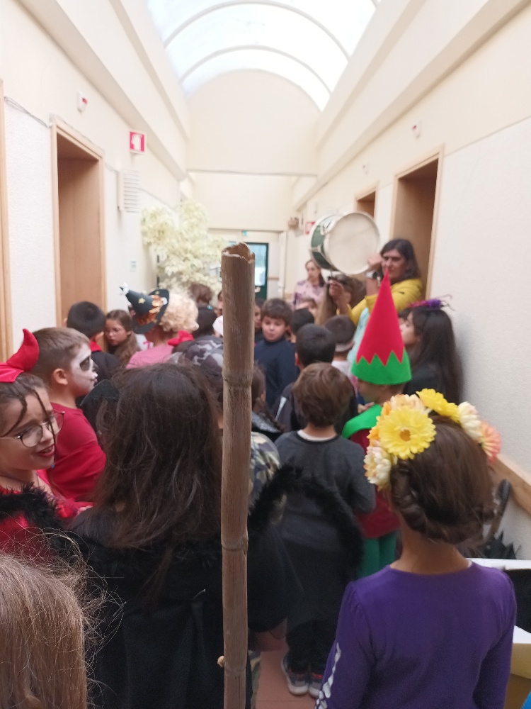 Os alunos tocaram e cantaram alegremente a canção alusiva a este evento, nos diversos espaços onde fomos. As crianças, seguiam sorridentes, algumas fantasiadas, relembrando também a comemoração do Halloween.