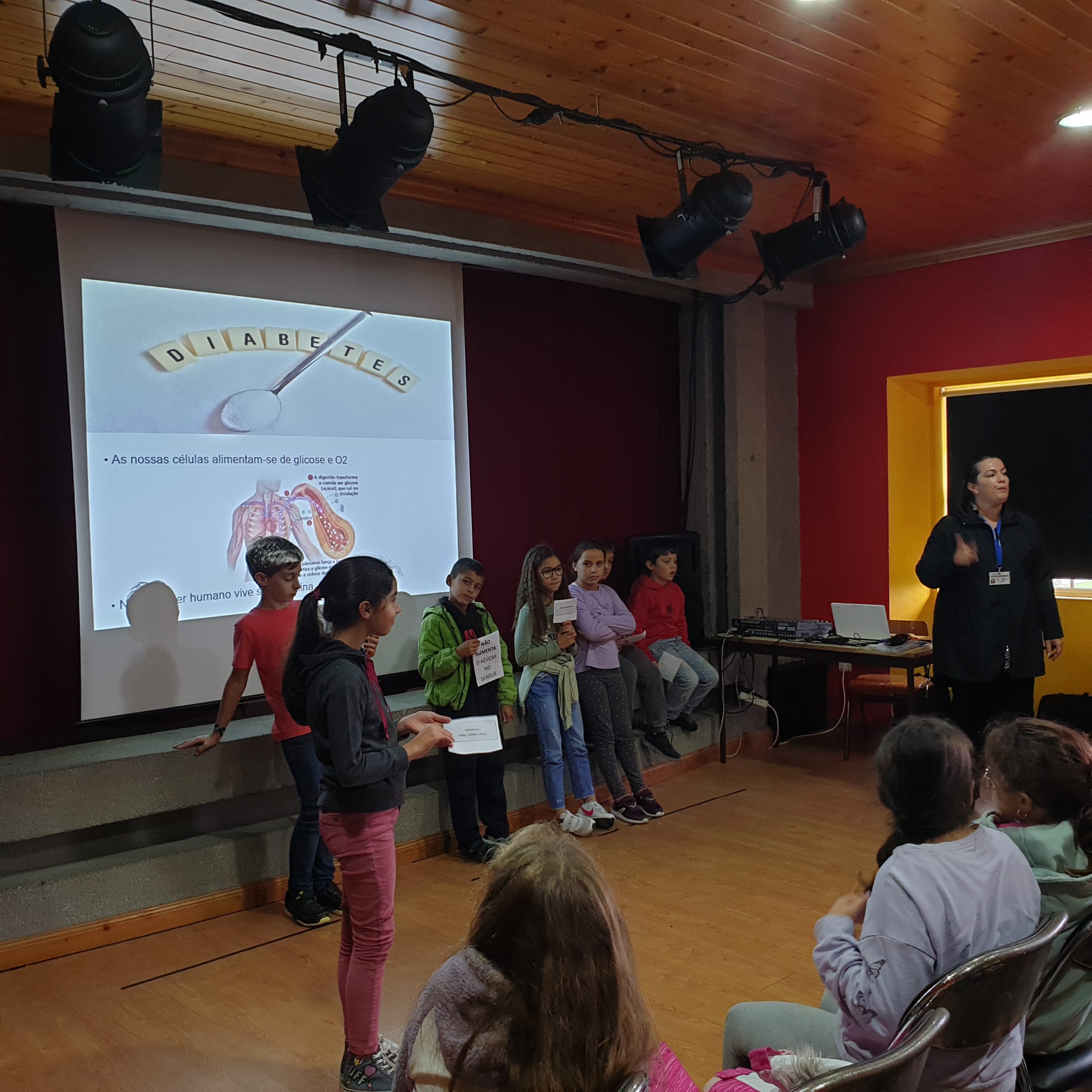 No dia 13 de novembro de 2023, foi realizada pela Enfª. Cláudia, do Centro de Saúde da Calheta, na nossa escola, uma palestra de sensibilização relacionada com a Diabetes mellitus, no Auditório, para toda a comunidade escolar. Uma vez que, existem pessoas nesta escola com a referida doença crónica, para sabermos e estarmos alerta quanto a sintomas, bem como, cuidados a ter.