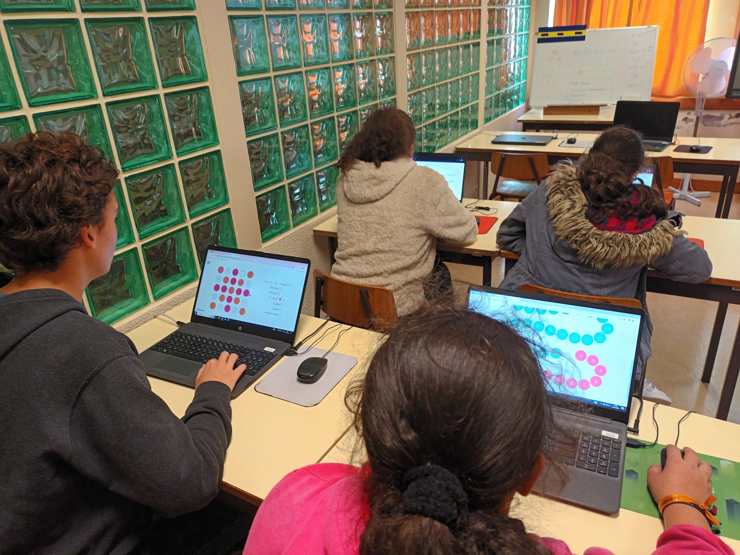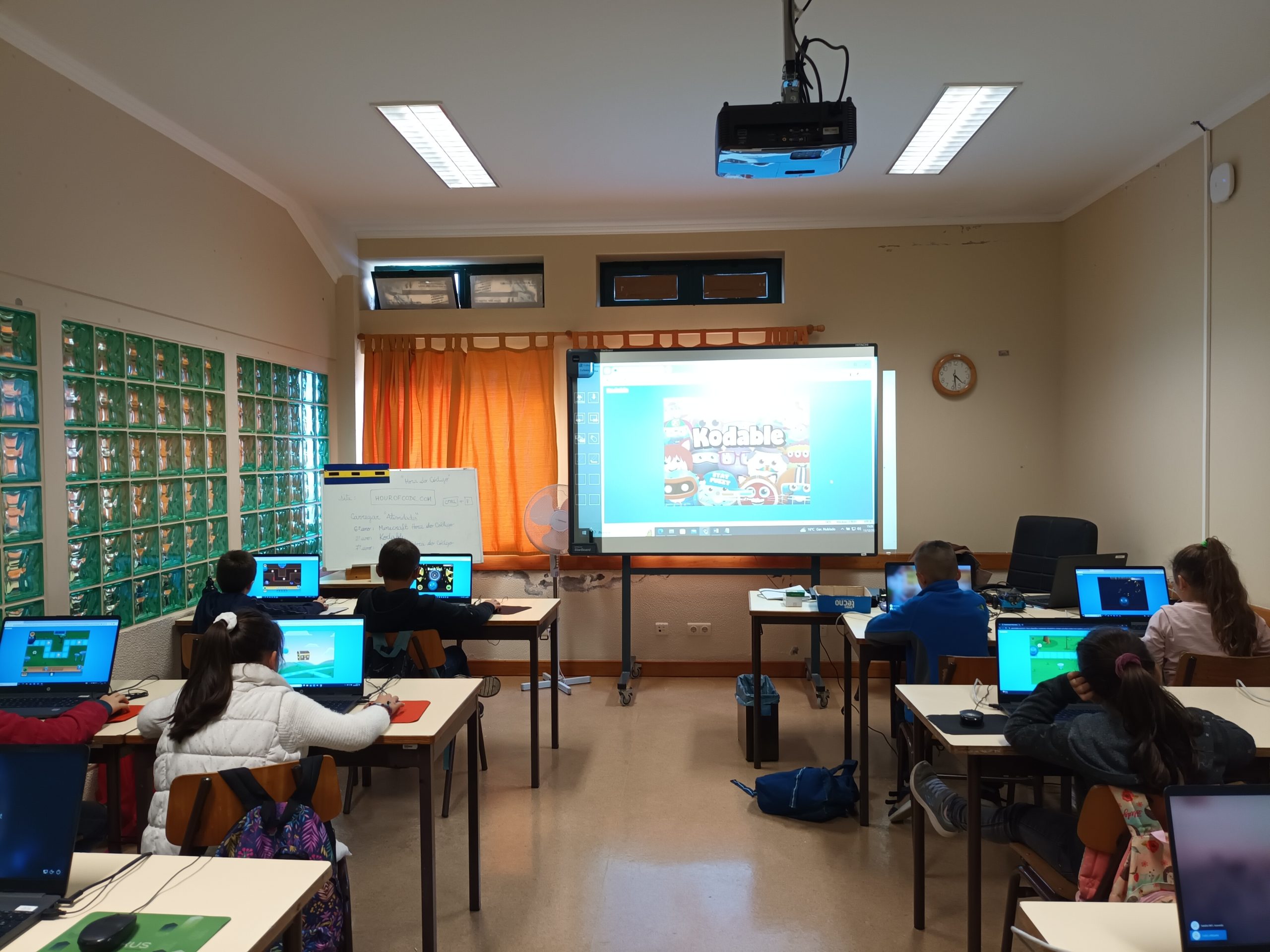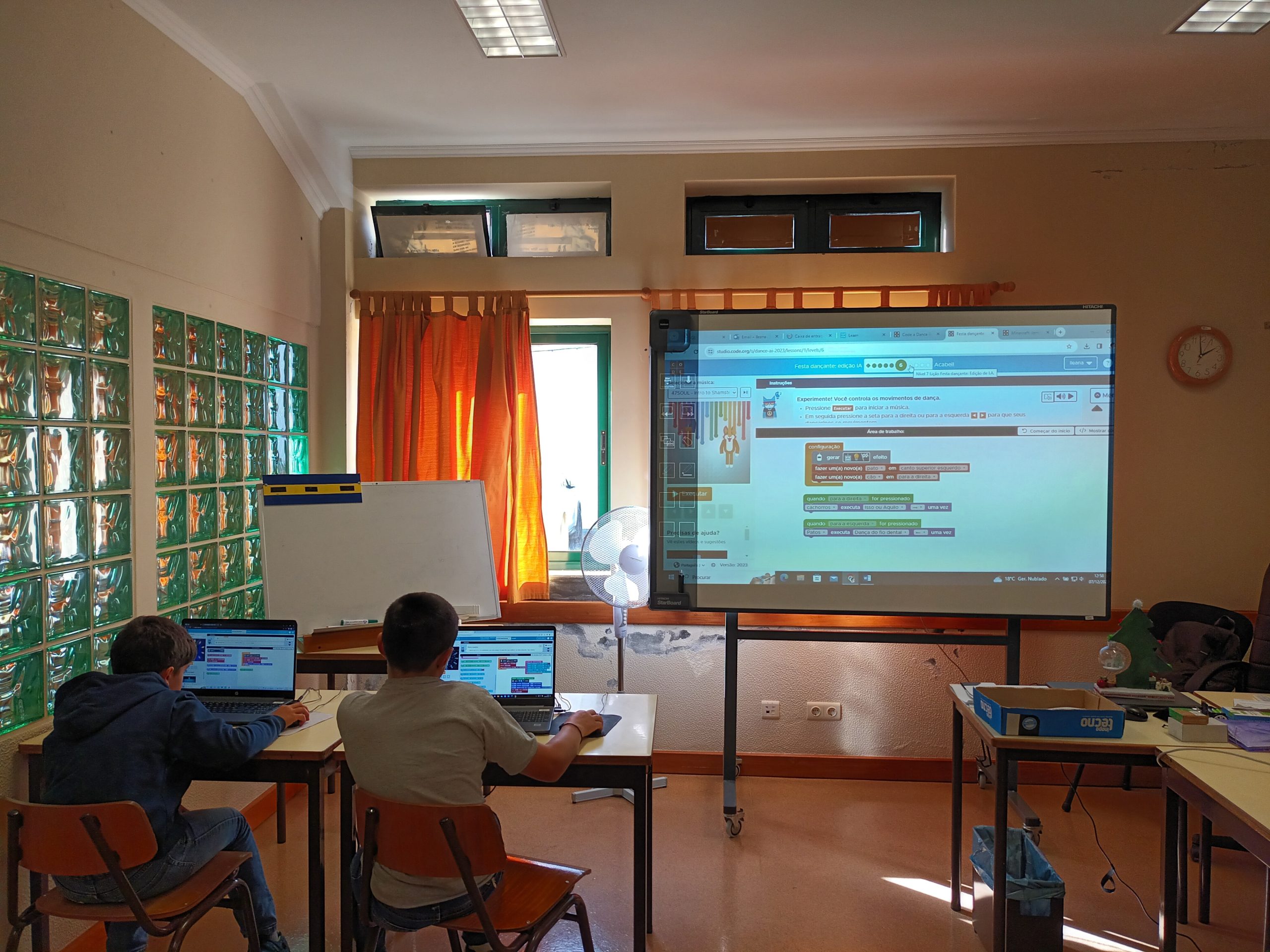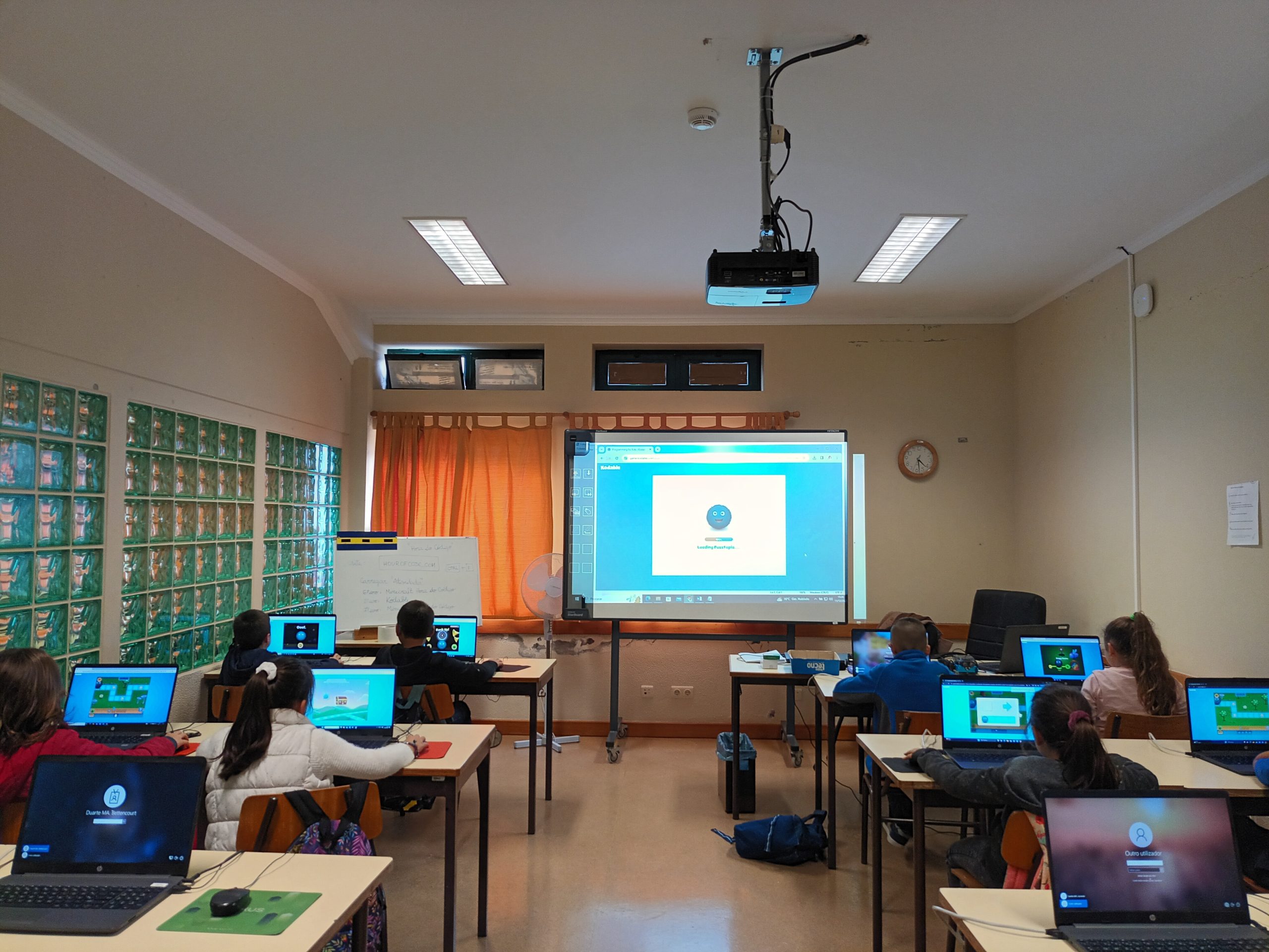 Do dia seis a quatorze de dezembro, os alunos da pré-escolar ao nono ano participaram da atividade “Hora do Código” (https://hourofcode.com/pt/pt), através dos jogos “Kodable” (https://www.kodable.com/), “Minecraft” (https://studio.code.org/s/hero/) e “Compute IT” (https://compute-it.toxicode.fr/?hour-of-code&progression=python), disponível na plataforma interativa Code.Org (https://code.org/), na qual tiveram a oportunidade de aprender a programar (codificar) em blocos. Esta atividade foi dinamizada pela docente da disciplina de Tecnologias da Informação e Comunicação (TIC).