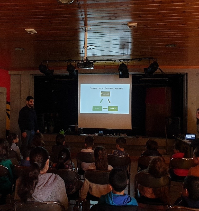 Para a apresentação do tema trouxeram uma apresentação em powerpoint, onde foram focados vários assuntos, desde o início da comemoração do Dia da Árvore, passando por vários instrumentos que servem para determinar a idade de uma árvore, até ao procedimento da sementeira.
