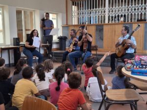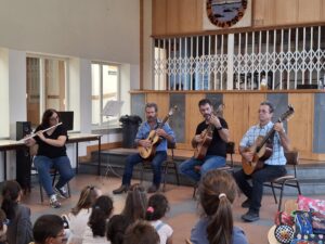 Os alunos do Pré-escolar e do Primeiro Ciclo participaram numa palestra sobre a “Viola da Terra”, apresentada pelo Luthier Jorgense, Sr. Raimundo Leonardes. De forma clara e objetiva, foi partilhada a história deste instrumento, destacando-se as suas características simbólicas, bem como as diferenças entre a Viola de 5 parcelas (12 cordas) e a de 6 parcelas (15 cordas). O evento incluíu também uma atuação musical com canções tradicionais dos Açores. Para finalizar, os alunos pintaram um desenho alusivo à Viola da Terra.