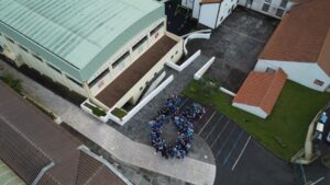 No passado dia 8 de abril, a EBI da Vila do Topo celebrou o dia do Laço Azul, uma vez que abril é o mês da prevenção dos maus-tratos na infância. A iniciativa deve-se a uma mulher norte americana, Bonnie Finney, que em 1989 amarrou uma fita azul na antena do carro, em homenagem ao seu neto, vítima mortal de maus-tratos. Este gesto e a sua enorme repercussão definiram abril como o mês internacional da prevenção dos maus-tratos na infância. No átrio da nossa escola, alunos, pessoal docente, pessoal não docente e encarregados de educação juntaram-se para formar um Laço gigante humano. Todos vestiram-se de azul e receberam um laço azul para colocar ao peito, cujo material resultou do aproveitamento de restos de tecido existente no Departamento de Expressões. Simultaneamente, foi assinalado e lembrado também o dia do Autismo. Toda a comunidade escolar uniu-se na defesa de duas causas que infelizmente ainda afetam muitas crianças.