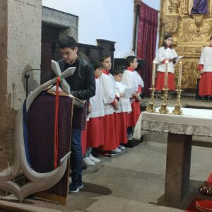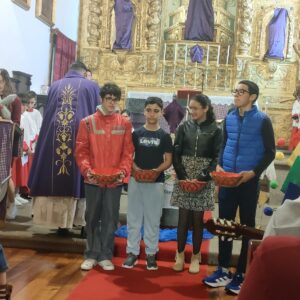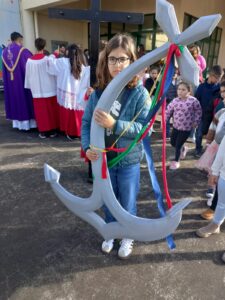 Neste âmbito, os alunos pesquisaram a origem do Jubileu, o significado dos símbolos e lema, assim como os acordes e letras das músicas. Ensaiaram todos os cânticos, acolitaram e ajudaram nos preparativos desta celebração. Além disso, foram responsáveis pelas leituras e participação no ofertório solene, assim como pela leitura da oração dos fiéis. Também aceitaram o desafio de fazer o símbolo do Jubileu em família. Por fim, abrilhantaram a celebração ao tocarem violão e órgão. Assim, todos se sentiram em missão.