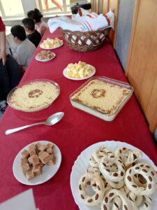 A partilha, o entusiasmo e a solidariedade estiveram sempre presentes, com a generosa contribuição de produtos locais e a confeção de doces típicos como a espécie, o arroz doce e a massa sovada.