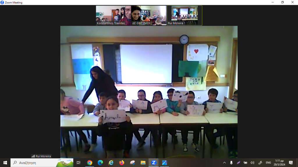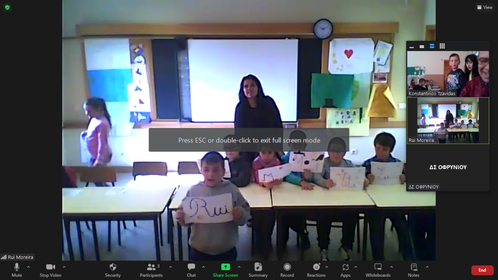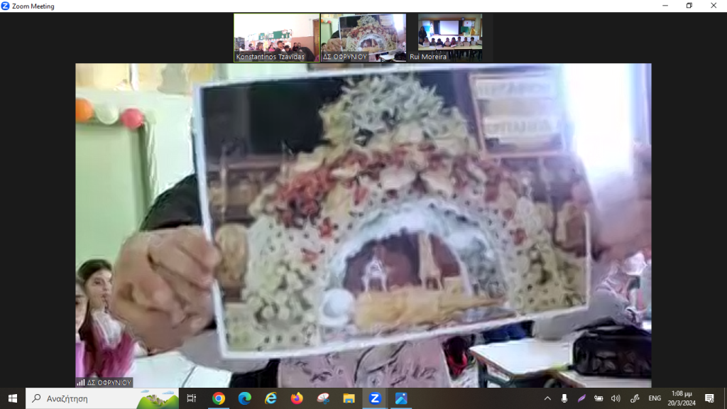 No dia 20 de março, através da plataforma eTwinning, decorreu o primeiro encontro da nossa escola e dos alunos do 3ºano, no âmbito do projeto ” Artes e Tradições da Páscoa”, com as escolas gregas de Meliti e de Ofrinio. Neste primeiro encontro, os nossos alunos e os colegas gregos apresentaram o seu nome, idades e gostos pessoais, revelando-se um momento de alguma emoção e nervosismo, mas de abertura de portas ao conhecimento de outras culturas, línguas e saberes, bem como a curiosidade e a consciencialização do mundo que as rodeia.